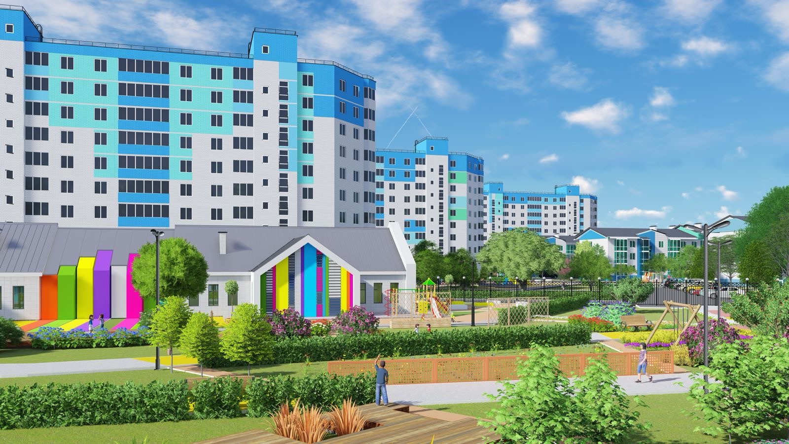 Концепция благоустройства ЖК «Атмосфера» включает в себя: